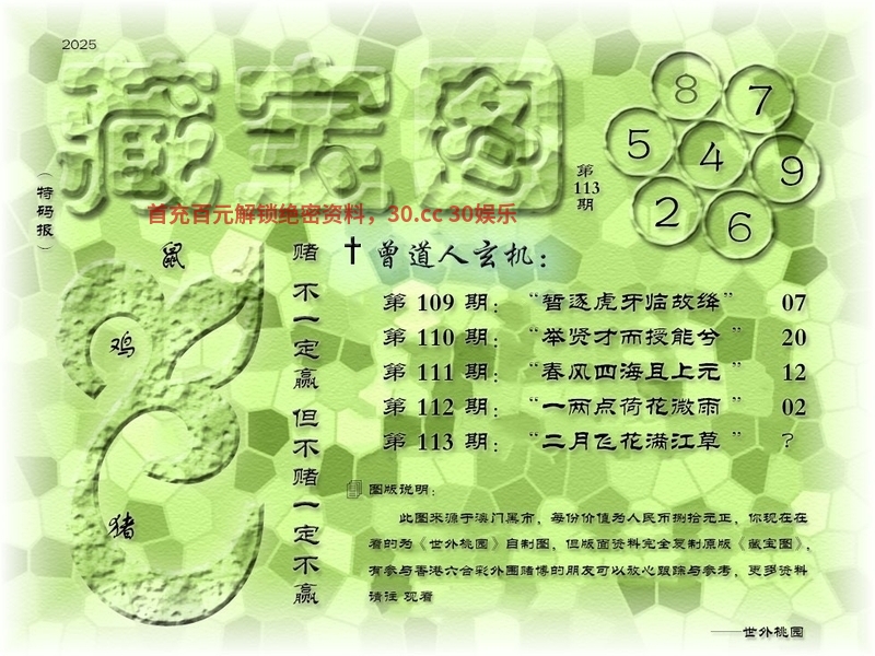 116期藏寶圖新:心随黄雀绕檐飞 老:湖上青山对结庐 禁:狗 禁:9尾 玄機字:《在》