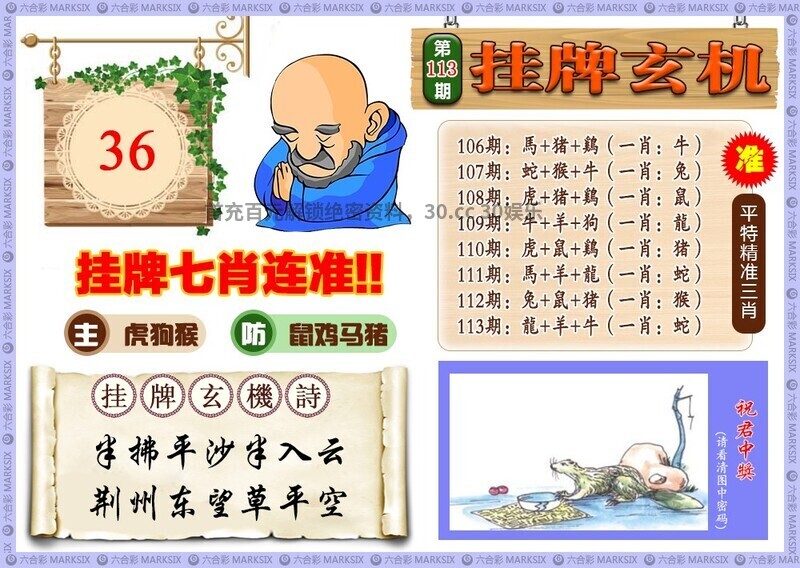 116期无字天书:九五分合今期来,没有四脚会走路。虎26